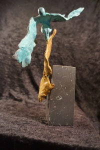 Brons. Sokkel: Belgisch hardsteen.